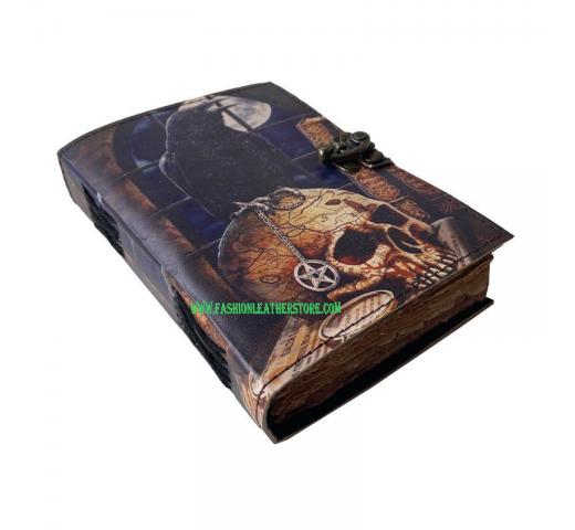 • The printed The Symbol Of Crow Dead Skull  on cover has been done by hand making by tools it unique. The sturdy stitching along the spine holds the papers in place.