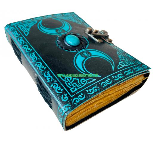 • The Leather Triple Moon Eye on cover has been done by hand making it unique. The sturdy stitching along the spine holds the papers in place.