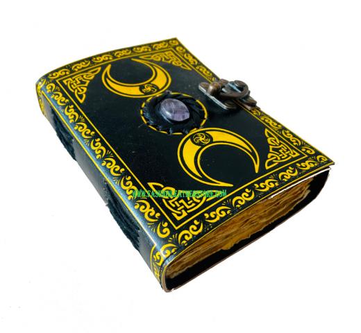 handmade printed leather journal, vintage leather journal diary, leather book,Book Of Shadows Moon Leather Journal Eye Triple Moon journal Stone bound journal for gifting Wholesaler Vintage Hardcover With Amethyst Stone
