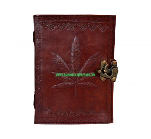 Brown Hemp Leaf Leather Journal - Grow Journal Diary Cannabis Marijuana Leaf