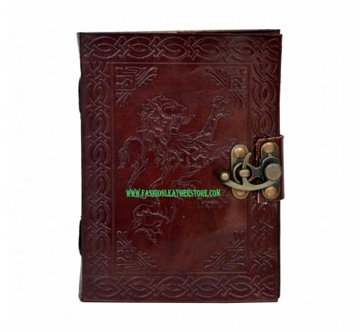 Celtic Lion Embossed Leather Journal Diary Handmade with leather strap closure C Lock Journal