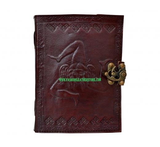 • Handcrafted out of Indian leather with 120 pages of recycled Indian cotton paper Pentagram Embossed Leather Journal Diary With one C Lock Blank Diary.