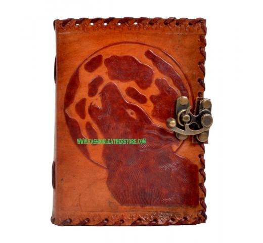 Handmade embossed moon wolf diary leather journal notebook