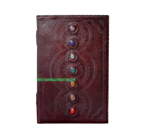 Handmade Leather Journal Embossed 7 Chakra Medieval Stone Leather Journal Notebook