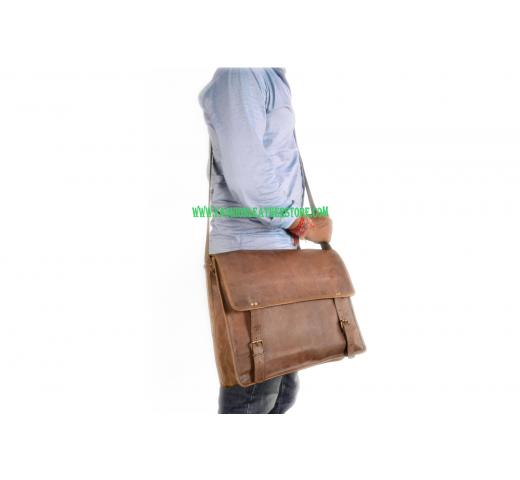 Handmade leather messenger goat real laptop satchel bag genuine briefcase