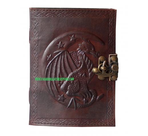 ·Handcrafted out of Indian leather with 120 pages of recycled Indian cotton paper Star with Rounded Dragon Embossed Leather Journal Diary With one C Lock Blank Diary