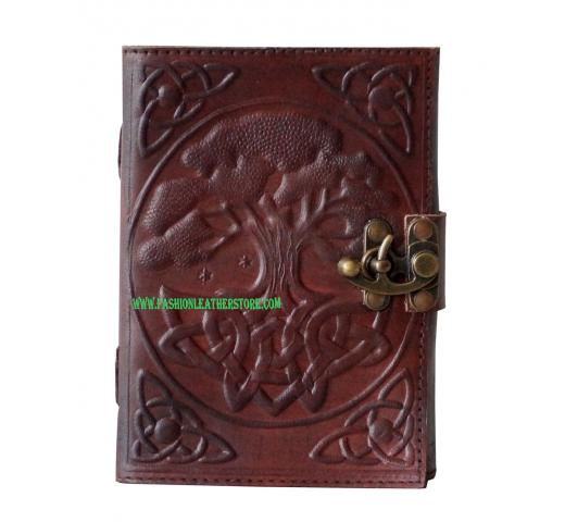 ·Handcrafted out of Indian leather with 120 pages of recycled Indian cotton paper Tree of life Embossed Leather Journal Diary With one C Lock Blank Diary