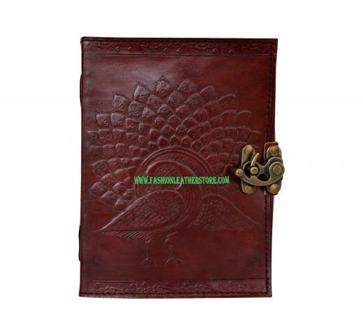 Handmade Medieval Renassiance Book Embossed Peacock Leather Journal Diary Note Book