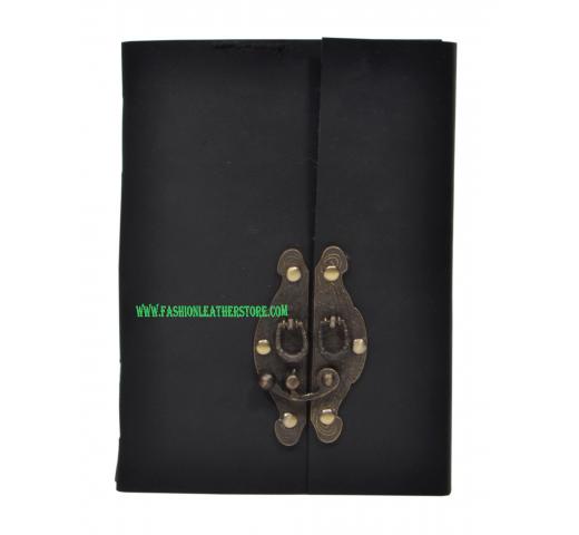 Hardcover Blank Paper Notebook With Antique Brass lock Latch Clasp Authentic Genuine Leather Journal With Lock Diary