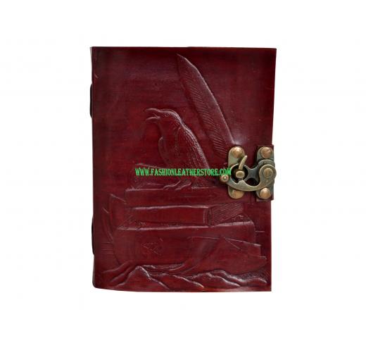 Beautiful Embossed Leather Journal Brown Crow Leather Diary Note Book
