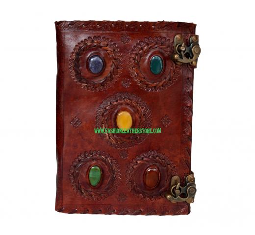 Real Brown Leather Handmade Diary Gods Eye Stone Journal Travel Blank Notebook