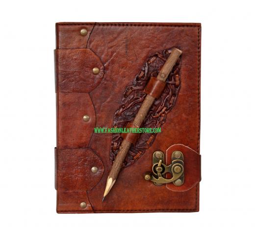• Handcrafted out of Indian leather with 120 pages of recycled Indian cotton paper Pentagram Embossed Leather Journal Diary With one C Lock Blank Diary.