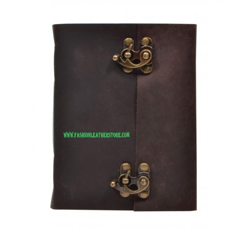 Leather Journal Blank Unlined Paper Handmade Brass Clasp Lock Journal Notebook