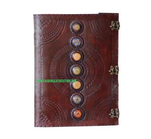 • Handcrafted out of Indian leather with 120 pages of recycled Indian cotton paper Seven Chakra Medieval Stone Embossed Leather Journal Diary With one Triple C Lock Blank Diary.