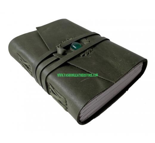Antique Genuine  Handmade Leather Journal Writing Notebook - With Stone Green Color Antique Handmade Bound Leather Journal With Stone Vintage Design Journal For Unisex Leather Journal Diary Handmade Pocket Notebook Design Journal Diary Blank Sketchbook Gift Planer.