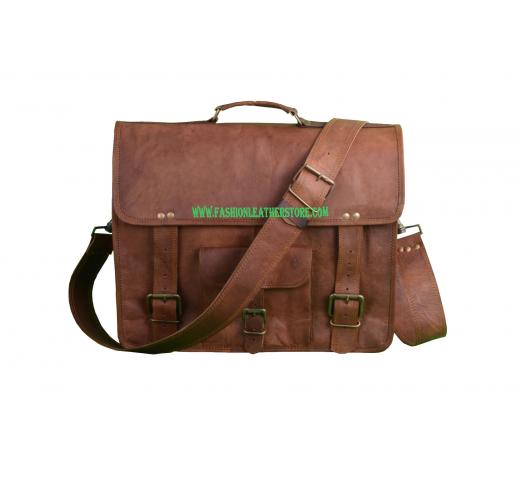 Men's Real Goat Leather Vintage Brown Messenger Shoulder Laptop Bag Briefcase Bag