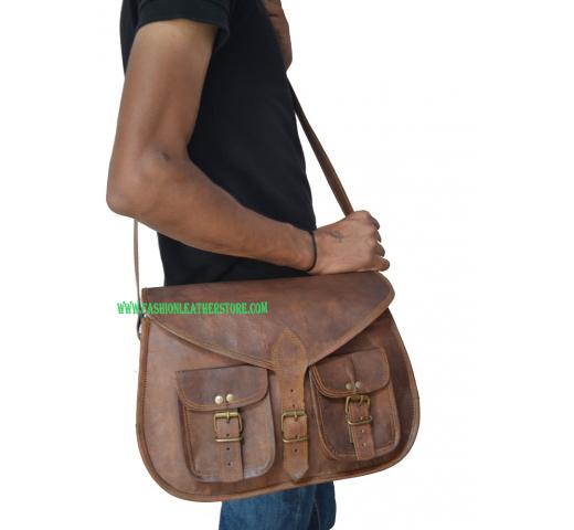 Products Description: Each bag is individually made using goat leather by experienced crafts people The bag gets better and better with the time as the leather softens and deep-ens in color. The tonality color of each bag might vary in accordance with the low and high temperatures from the heart of The Thar Deser .The leather does not receive any chemical treatment. On the bags a special vegetable oil is applied to give more tonality to the dominant brown (light and dark) color of the bag also making it more resistant to the water. Each bag has its charm and style and a very special earthy smell that will assure you it’s real leather . Its lightness, flexibility and durability will not make you regret your purchase.