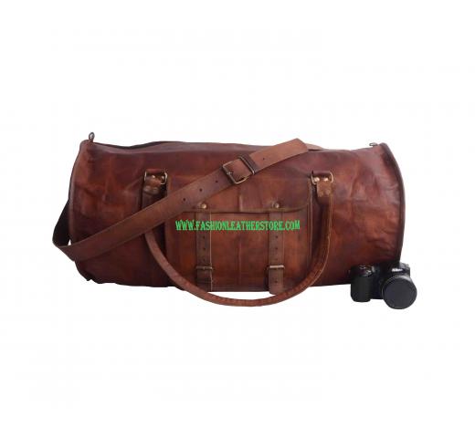 Real Goat Leather Handmade Travel Luggage Vintage Holiday Genuine Duffel Bag