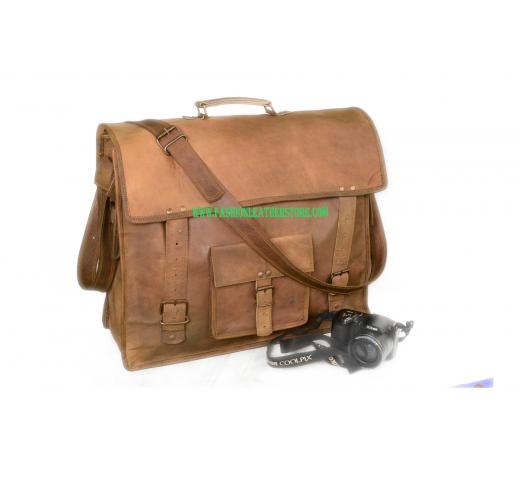 School Office Messenger Laptop Shoulder bag, Vintage goat Leather bag Men's