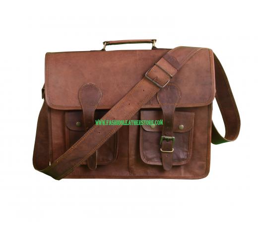 Vintage Goat leather messenger Real brown laptop satchel bag genuine briefcase bag