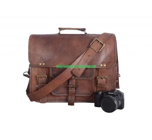 Vintage Goat Leather Messenger Real Satchel Bag, Genuine Laptop Brown Briefcase Bag