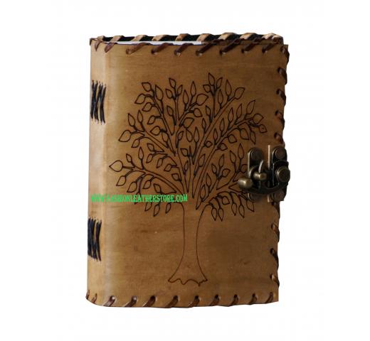 ·Handcrafted out of Indian leather with 120 pages of recycled Indian cotton paper Tree of life Embossed Leather Journal Diary With one C Lock Blank Diary