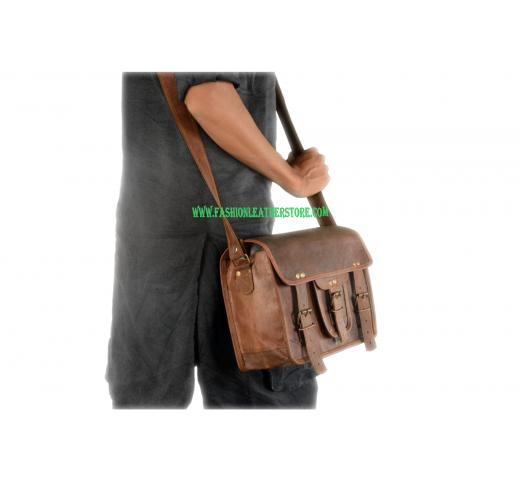 Vintage handmade messenger Real Goat leather satchel shoulder bag for camera