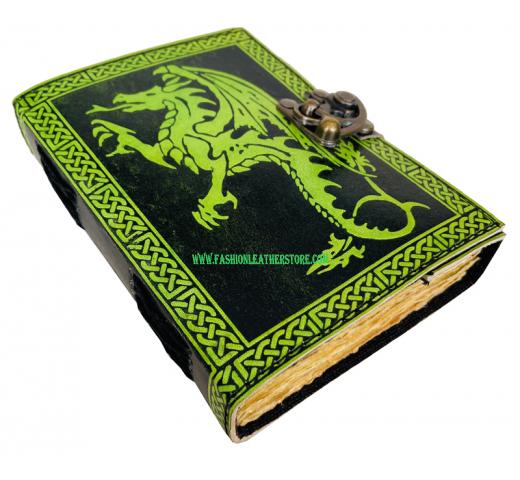 • The Leather Dragon on cover has been done by hand making it unique. The sturdy stitching along the spine holds the papers in place.