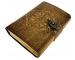 • The Leather Sun on cover has been done by hand making it unique. The sturdy stitching along the spine holds the papers in place.