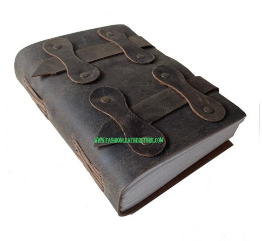 • The Leather Strap on cover has been done by hand making it unique. The sturdy stitching along the spine holds the papers in place.