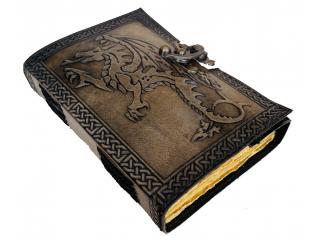 • The Leather Le Cuir Dragon on cover has been done by hand making it unique. The sturdy stitching along the spine holds the papers in place.