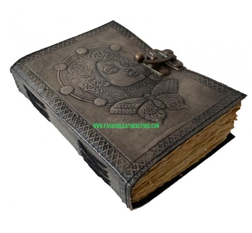 Wholesaler Handmade Grimoire Mother Goddess Face Leather Journal Book Of Shadows Leather Journal With C Lock Best Gift For Christmas, Mother's Day, New Year, Men, Women Deckle Edge