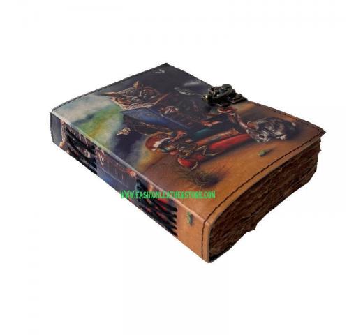 Wholesaler Handmade Owl Printed Vintage Spell Book Of Shadows Leather Journal With C Lock For Unisex Deckle Edge Paper 200 Pages Notebook Sketchbook 7x5