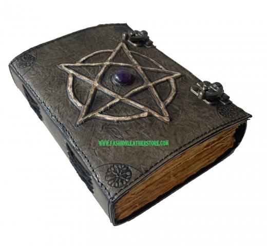 • The Leather Handmade Hard Le Cuir Pentacle Pentagram Wicca Wiccan Antique on cover has been done by hand making it unique. The sturdy stitching along the spine holds the papers in place.