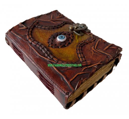 • The Leather Handmade Hocus Pocus Eye on cover has been done by hand making it unique. The sturdy stitching along the spine holds the papers in place.
