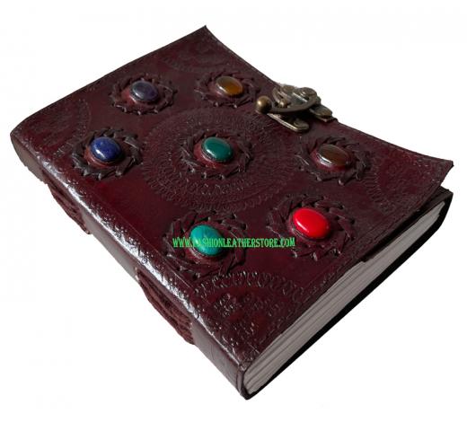 • The Leather Seven Stone on cover has been done by hand making it unique. The sturdy stitching along the spine holds the papers in place.