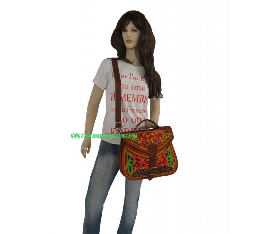 Products Description: Each bag is individually made using goat leather by experienced crafts people The bag gets better and better with the time as the leather softens and deep-ens in color. The tonality color of each bag might vary in accordance with the low and high temperatures from the heart of The Thar Deser .The leather does not receive any chemical treatment. On the bags a special vegetable oil is applied to give more tonality to the dominant brown (light and dark) color of the bag also making it more resistant to the water. Each bag has its charm and style and a very special earthy smell that will assure you it’s real leather . Its lightness, flexibility and durability will not make you regret your purchase.